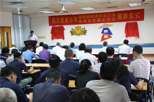 4月23日上午,燕京惠泉公司在第一会议室举行福建省智能制造试点示范企业和泉州市专家工作站揭牌仪式。惠安县政府副县长王也夫,泉州市经信委领导,泉州市科技局领导,泉州市食品协会领导等,以及中共惠安县委组织部,县委直属机关工委,县经信局,县科技局,县科协等部门领导,中国食品工业发酵研究院王德良,郝建秦等两位专家及公司中高管人员和技术研发人员参加揭牌仪式。仪式由公司党委陈新华副书记主持。