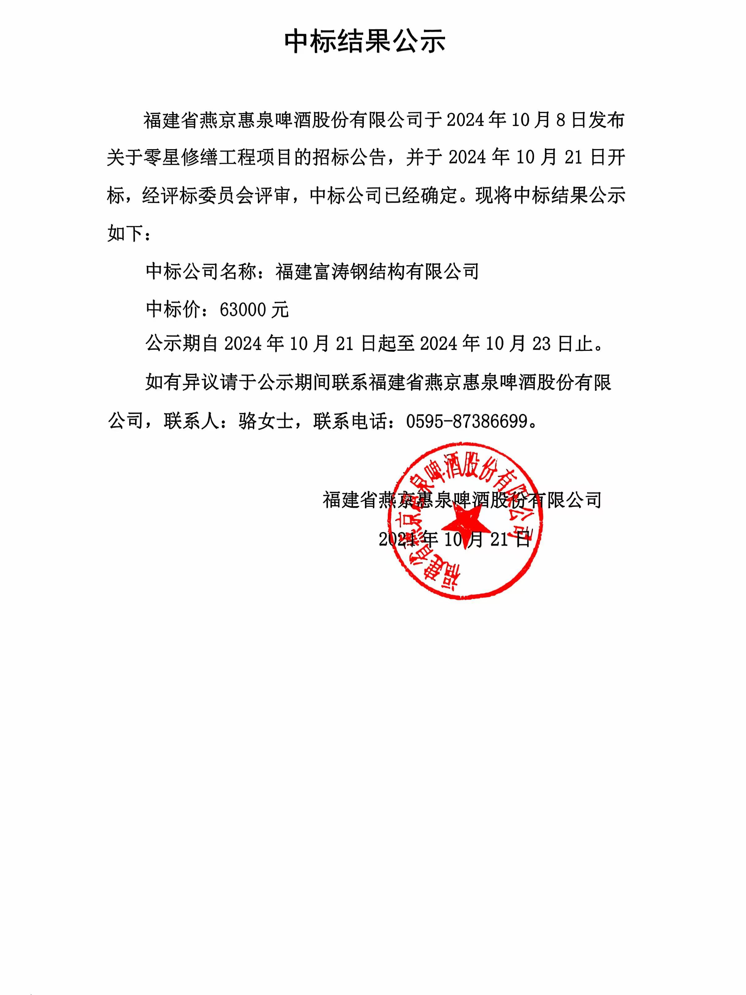 :福建省燕京惠泉啤酒股份有限公司 成品酒运输项目招标公告