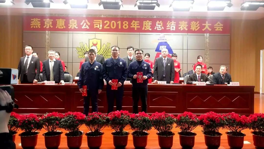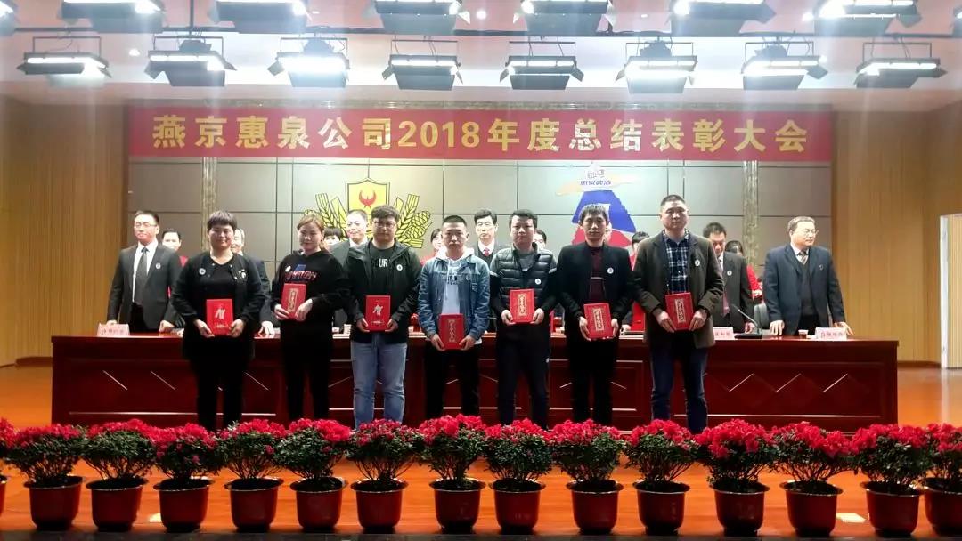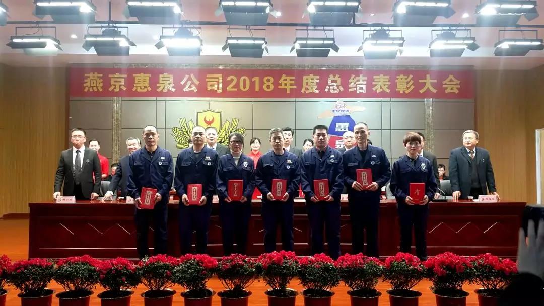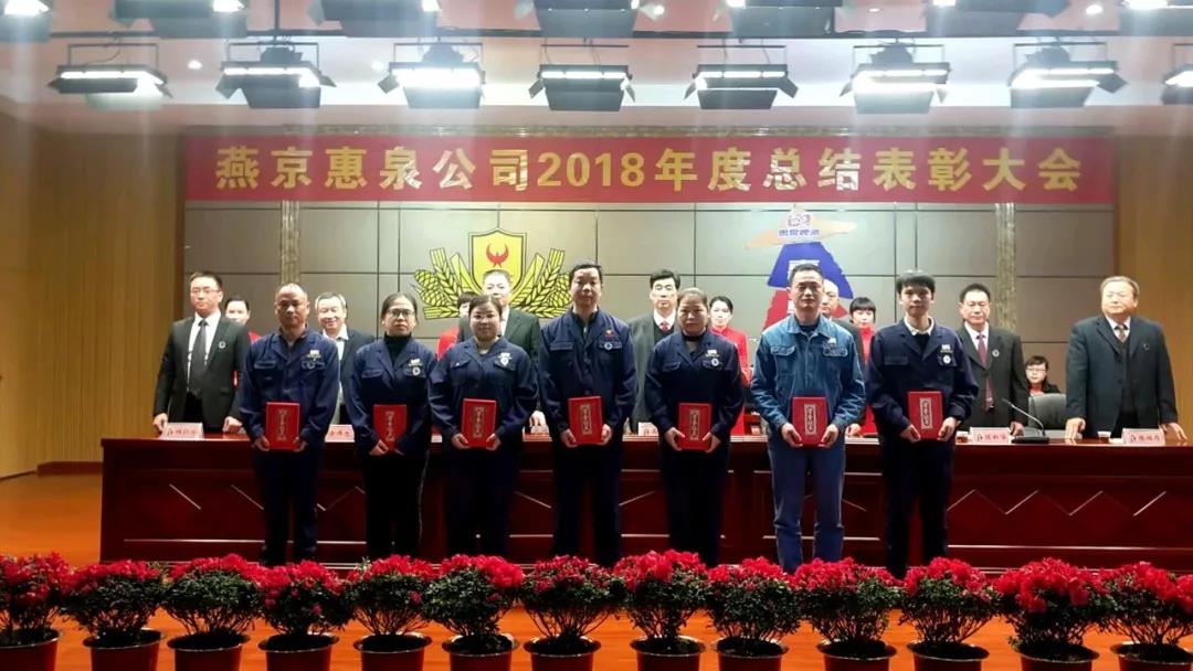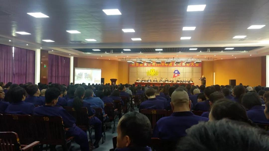 1月25日下午,寒冷冬日,暖阳高照,燕京惠泉公司2018年度总结表彰大会在多功能会议厅隆重召开。公司年度获奖人员、全体中高层管理人员、各职能部门人员、各生产车间班组长和员工代表共600多人参加会议。福鼎公司,抚州公司设分会场通过视频收听收看。