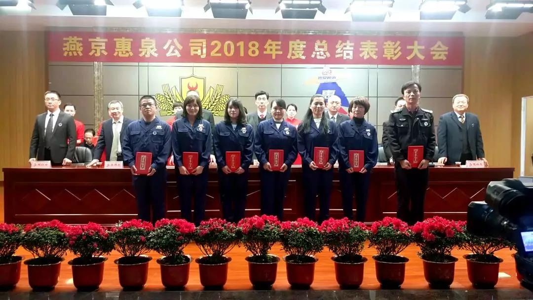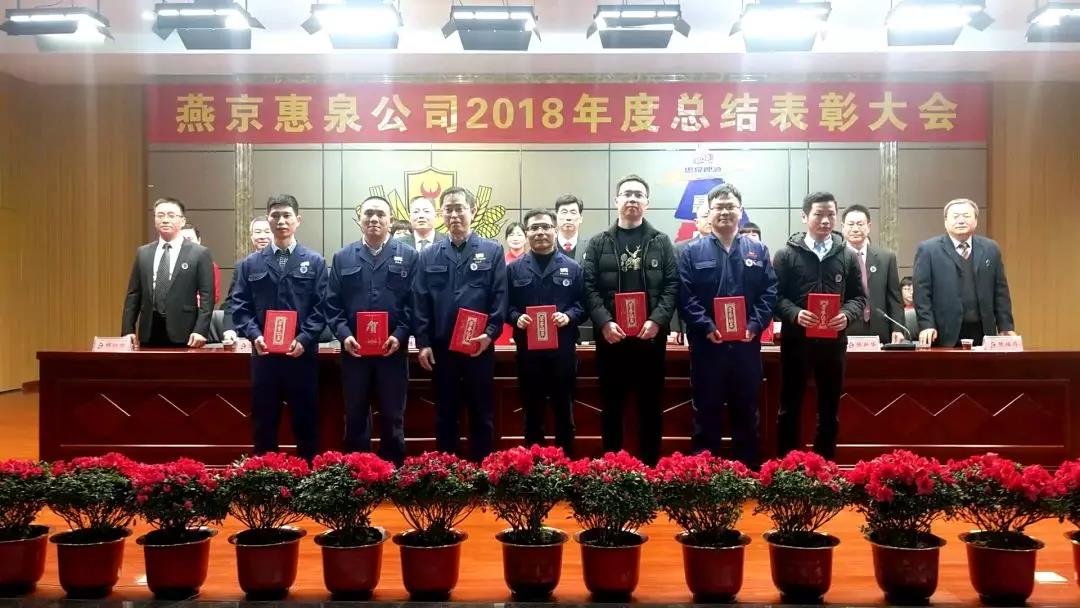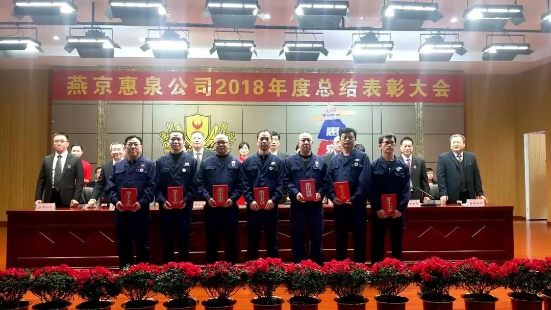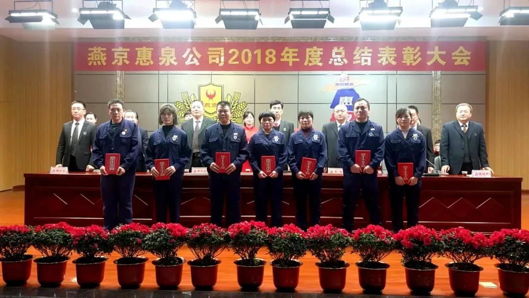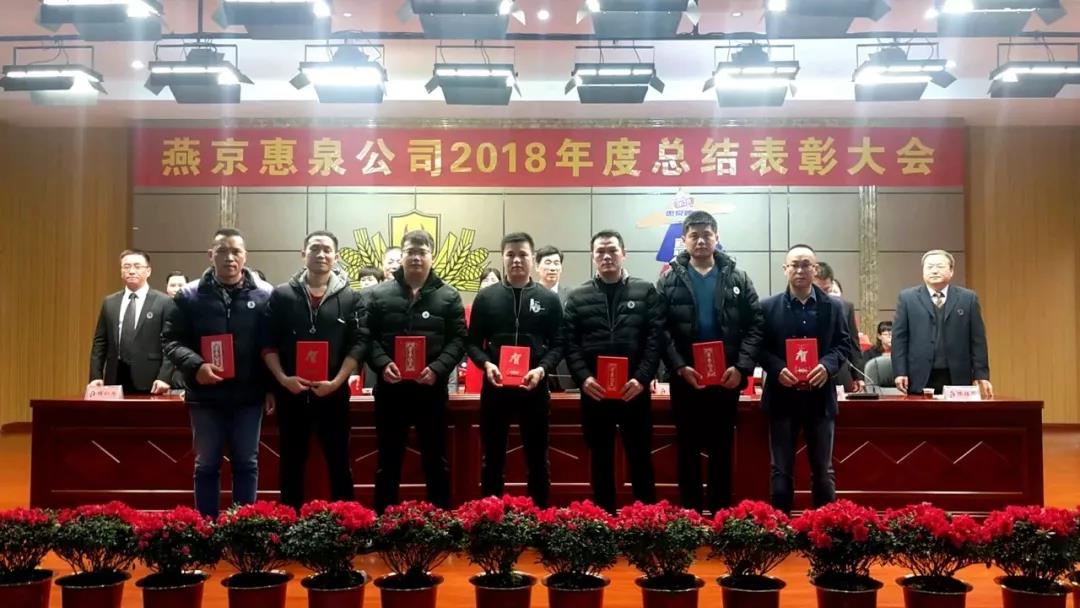 1月25日下午,寒冷冬日,暖阳高照,燕京惠泉公司2018年度总结表彰大会在多功能会议厅隆重召开。公司年度获奖人员、全体中高层管理人员、各职能部门人员、各生产车间班组长和员工代表共600多人参加会议。福鼎公司,抚州公司设分会场通过视频收听收看。
