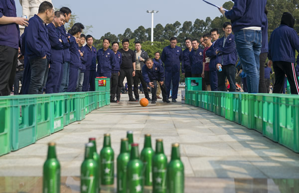 职工运动会是面向全体员工的大型综合性体育赛事,通过竞技性与趣味性相结合的形式,让公司广大员工齐聚赛场,共同展现企业风采,释放惠泉人的活力与激情。本届运动会时间跨度较大,共有15个项目,包括男女子乒乓球、男女混合拔河、男女子团体接力、男女子环厂跑、山地自行车、梦想传递、群龙取酒、拳王争霸、趣味保龄球、集体跳绳、个人跳绳、象棋、扑克、消防演练等,参与人数累计超600人次。个人赛事中像乒乓球、环厂跑、象棋、跳绳等拼的是个人的技能和体力,一些团体合作项目如拔河、接力、梦想传递等不仅要靠个人,团队精神在这些项目的显现更是十分重要。为了使运动会参与面更广,公司特地选择了一些趣味性项目如扑克、趣味保龄球、拳王争霸等。