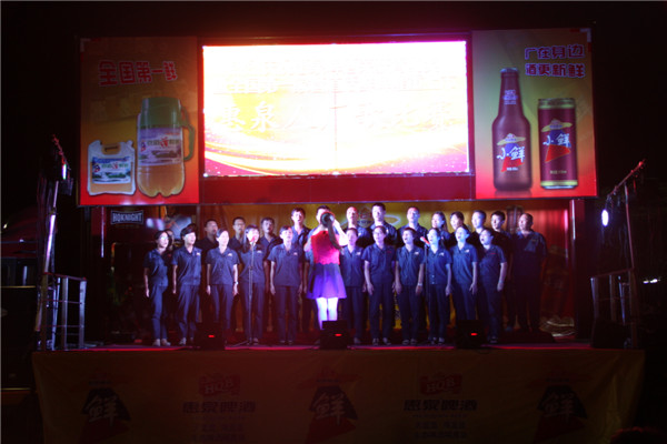 6月11日晚,为庆祝“惠泉小鲜啤酒”荣获全国酒类奖项“青酌奖” 暨“惠泉管道活鲜啤”试营业,一场充满激情的惠泉人厂歌比赛在公司惠女广场举行,为“惠泉管道活鲜啤”试营业增添了一道亮丽的风景线,慕名而来的首批顾客以及公司员工络绎不绝,整个现场喜气洋洋。这次活动是在公司党委组织下,各个支部精心策划编排,广大员工参与的厂歌比赛活动。活动现场,委婉不失雄壮,深情不失激昂的厂歌旋律不绝于耳,还穿插员工自编的歌曲合唱、独唱、诗朗诵的精彩节目,让人久久不能忘怀。员工展现出来的精神面貌和精彩演出赢得了观众的阵阵掌声。经过一个多小时的激烈角逐,行政二支部、销售支部并列获得第一名,行政一支部获得第二名,生产一支部,生产二支部获得鼓励奖。