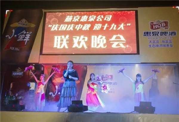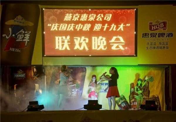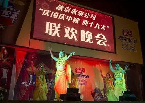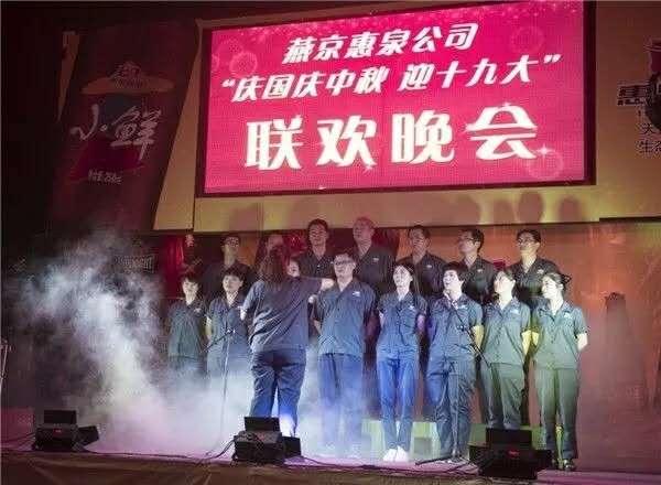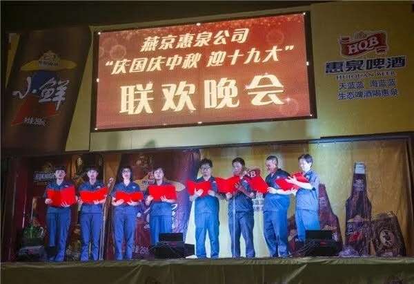 为庆祝中华人民共和国成立68周年、欢度中秋、喜迎中国共产党第十九次全国代表大会的胜利召开。9月29日晚上七点,燕京惠泉啤酒公司党委在惠泉科技园惠女广场举办“庆国庆中秋、迎十九大”联欢晚会。