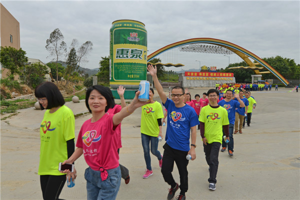 4月14日上午,作为接力泉州站的成员企业,燕京惠泉公司组织员工近300人,选择绕厂区外道路大半圈的行走路线,为北控益行摇旗呐喊。燕京惠泉公司董事长、党委书记、总经理高振安在接受媒体采访时,首先向北京控股香港上市20周年表示了热烈祝贺。他说,这次举办20个城市成员企业员工的爱心慈善健行接力活动,传递了一种满满的绿色环保爱心正能量。燕京惠泉作为北京控股的一分子,今天能够被选中为接力传递的城市之一,深感荣幸。燕京惠泉啤酒公司地处福建东南沿海美丽神奇的惠安女的家乡,这里天蓝蓝海蓝蓝,酿造的惠泉啤酒都是纯天然全生态,欢迎全国乃至全球的朋友们来到惠安这座小城,看看蓝天白云,碧蓝大海,还有美丽神奇的惠安女子,顺便品尝柔和爽口的惠泉啤酒。